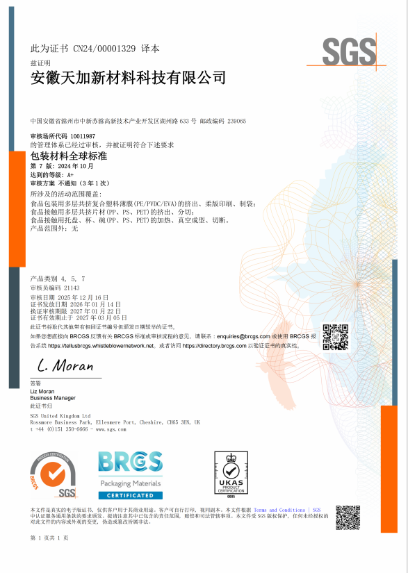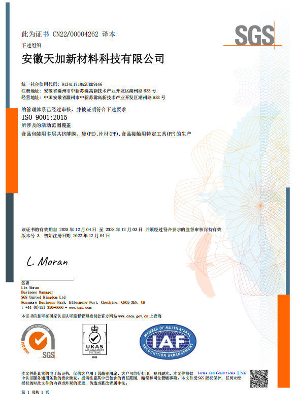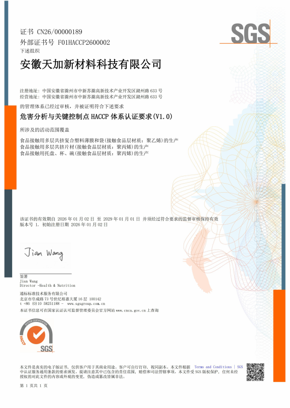 关于我们天加新材料集团股份有限公司是国内的生鲜肉包装整体解决方案提供商,服务各地肉类屠宰加工企业,主要提供生鲜肉生产及肉制品加工所需的各种新型包装材料。公司根据客户产品类别和市场定位,提供从包装方案优化、包装设备选型、生产现场规划及增值服务等一系列包装整体解决方案。涵盖热缩包装、气调包装、贴体包装等所需的各种材料、设备以及现场规划、消毒杀菌、技术培训等各项服务。包装材料有热收缩膜(袋)、气调盒、贴体盒等。天加引进了德国制造、世界一流的全伺服10+10色卫星式柔版印刷机,最高能实现双面20色正反对位、套色精准的印刷。
